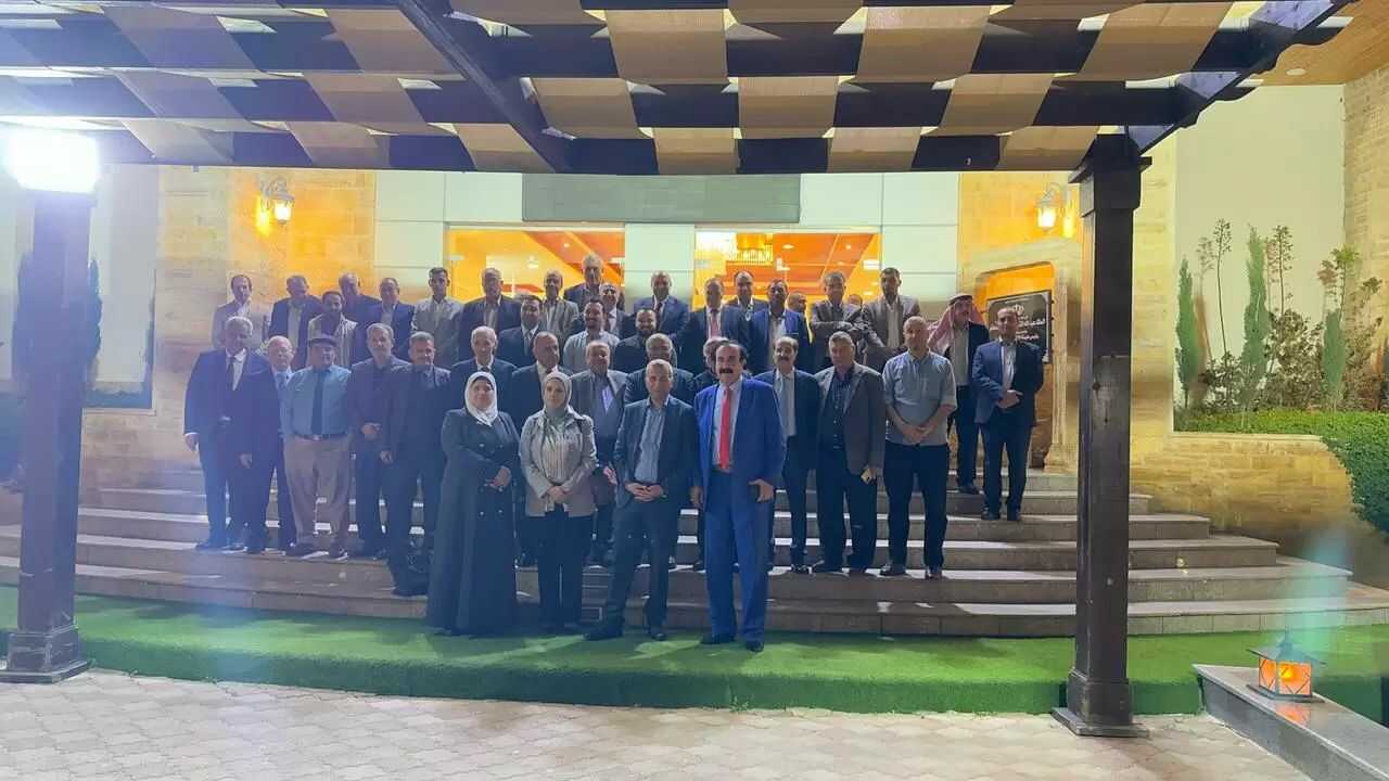 22 الاعلامي - علي فريحات - بدعوة كريمه من الاكاديمي في جامعة الزرقاء الدكتور تحسين شرادقة عقد اليوم في قاعة نادي الضباط المتقاعدين لقاء للمرشح لمنصب نقيب الصحفيين الاردنيين طارق المومني بحضور عدد من الزملاء اعضاء الهيئة العامة في اقليم الشمال تخلله افطار رمضاني .