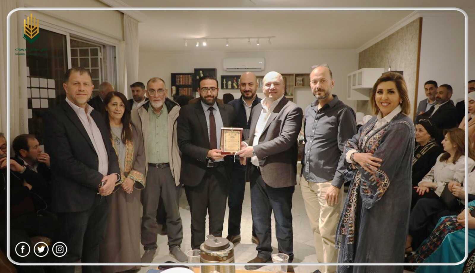 وقدم عضو الهيئة العامة المحامي طارق بني ارشيد درعاً تكريمياً للهيئة الإدارية بإسم فريق مكتب سفراء العدالة للقانون والتحكيم، تقديراً لجهودهم في تنفيذ برامج النادي.