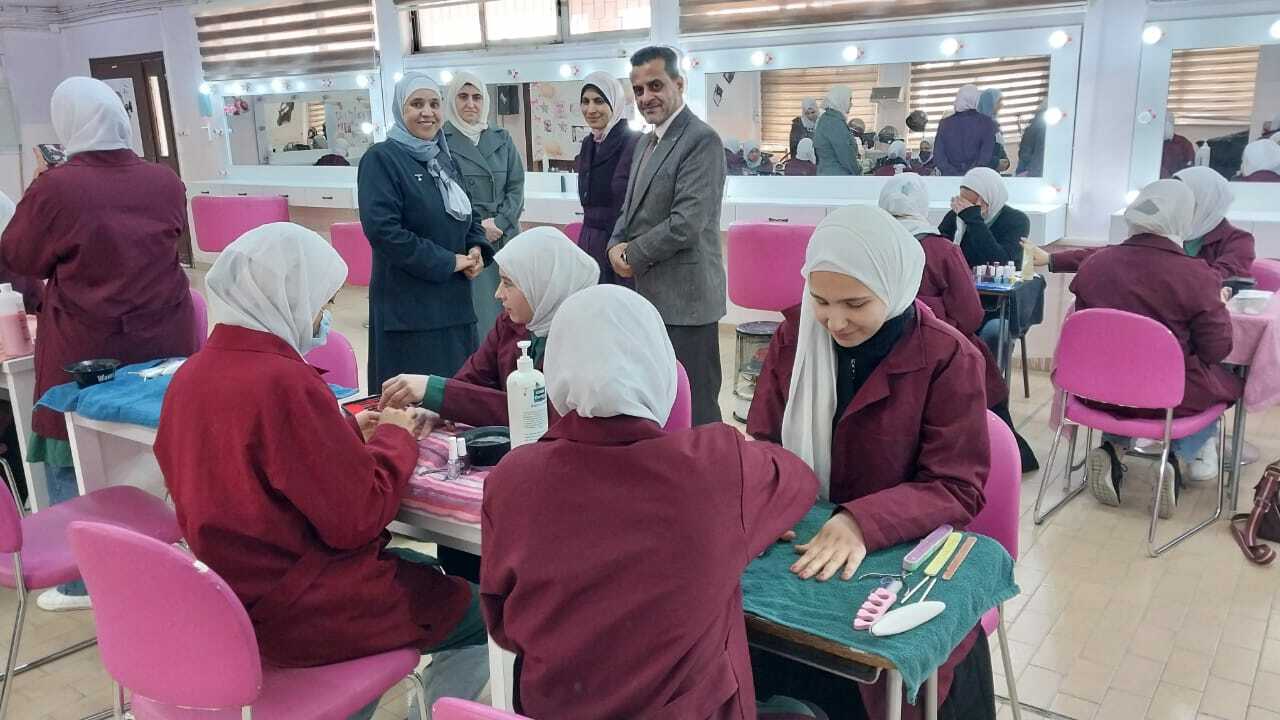 الشعر والجمال: تابع التدريب العملي في صالونات التدريب داخل المدرسة، حيث يتلقى الطلبة مهارات تصفيف الشعر والعناية بالبشرة وفق أحدث المعايير.