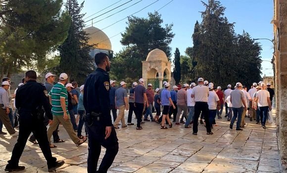 وقالت دائرة الأوقاف الإسلامية بالقدس في بيان، إن عشرات المستوطنين اقتحموا الأقصى على شكل مجموعات من جهة باب المغاربة ونفذوا جولات مشبوهة في باحاته وأدوا طقوسا تلمودية استفزازية فيه بحراسة مشددة من شرطة الاحتلال .