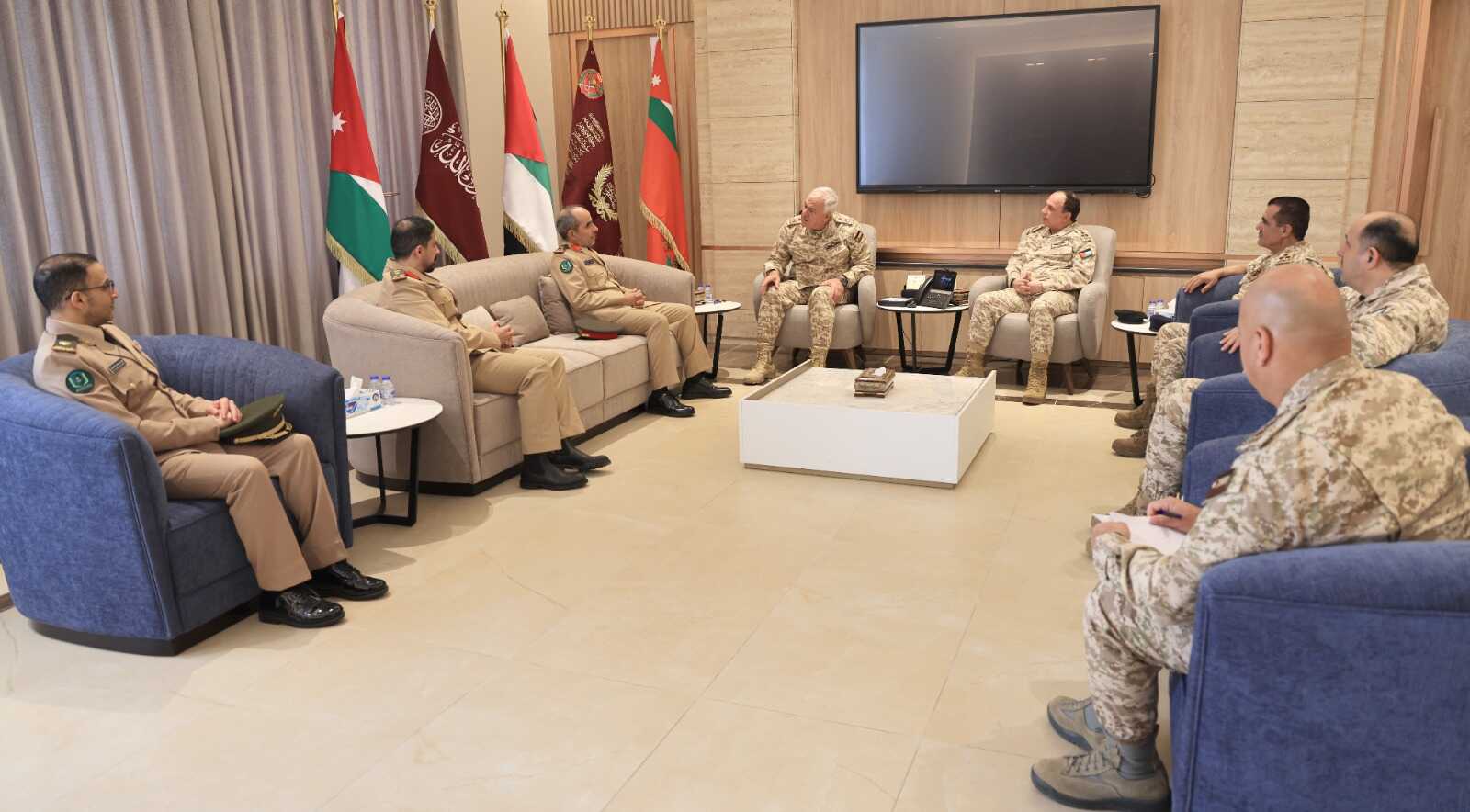 22 الاعلامي - استقبل رئيس هيئة الأركان المشتركة اللواء الركن يوسف أحمد الحنيطي، في مكتبه بالقيادة العامة، اليوم الإثنين، رئيس جامعة الدفاع الوطني السعودية اللواء الركن محمد بن جدوع الرويلي.وبحث اللواء الركن الحنيطي مع الوفد الضيف خلال اللقاء، أوجه التعاون والتنسيق المشترك في مختلف مجالات التدريب بشكل يسهم في تحقيق رؤى وتطلعات الجيشين الشقيقين.وبين رئيس هيئة الأركان المشتركة أهمية الشراكة الاستراتيجية التي تربط البلدين الشقيقين ودورها في تعزيز القدرات والإمكانات وعلى جميع المستويات.بدوره، أشاد اللواء الركن الرويلي بما شهدته القوات المسلحة الأردنية من تحديث وتطوير مشيراً إلى أهمية تعزيز الشراكة التي تربط الجيشين الشقيقين وخاصة في المجال الأكاديمي والبحثي.حضر اللقاء عدد من كبار ضباط القوات المسلحة الأردنية - الجيش العربي، والملحق العسكري السعودي في عمّان.