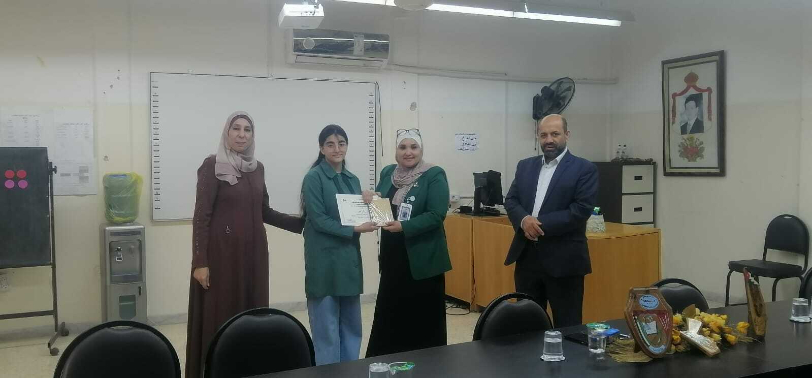 وحضر التكريم مدير الشؤون المالية والإدارية الأستاذ أيمن النصيرات ورئيس قسم الإشراف التربوي الدكتور مالك خصاونة ومنسق المنصة المشرف التربوي الدكتور أيمن ربابعة ومديرة المدرسة المستضيفة السيدة إيمان غازي.