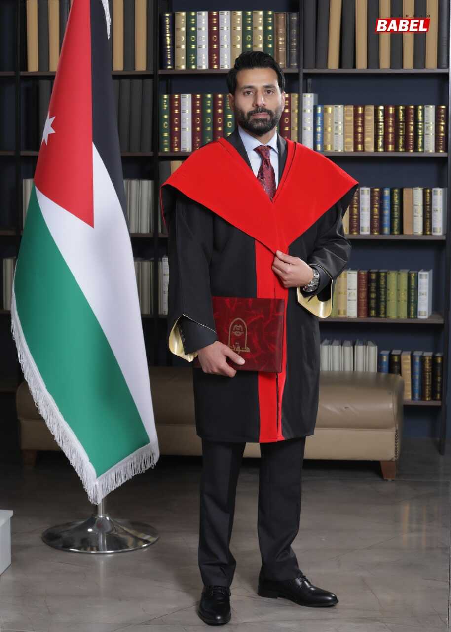 من جامعة مؤتة بتقدير امتياز، عن أطروحته المتميزة بعنوان: "الدور الروسي في تغيير بنية النظام الدولي في ضوء الحرب الروسية الأوكرانية"، والتي أُجيزت من لجنة علمية مشكّلة من نخبة من الأساتذة المتخصصين.