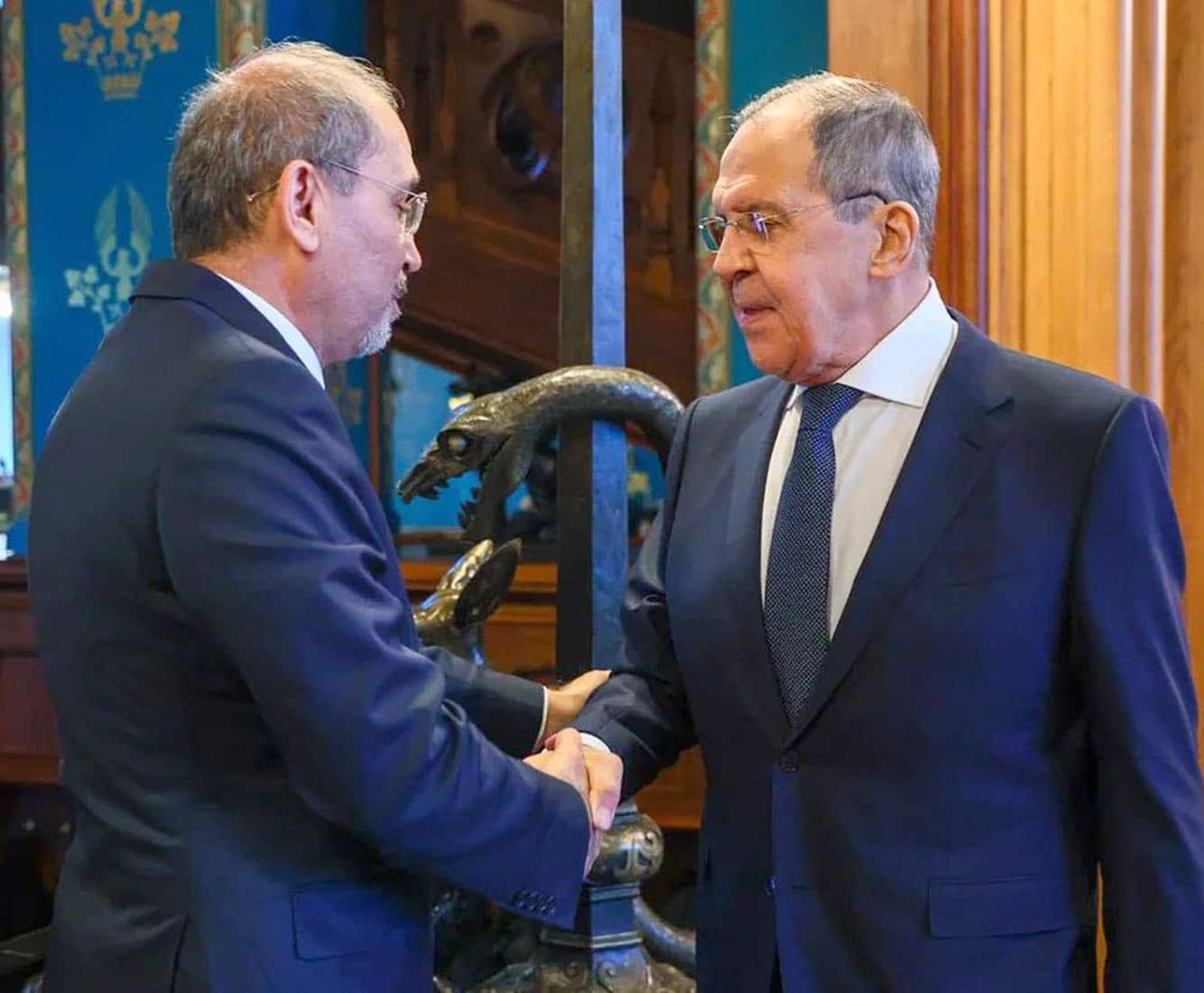 أجرى نائب رئيس الوزراء ووزير الخارجية وشؤون المغتربين أيمن الصفدي ووزير خارجية روسيا الاتحادية سيرجي لافروف، مساء امس الاثنين، محادثاتٍ ثنائية في لقاءٍ تَبِع الاجتماع الذي عقدته مجموعة الاتصال الوزارية العربية مع لافروف لبحث سبل حلّ الأزمة الأوكرانية.