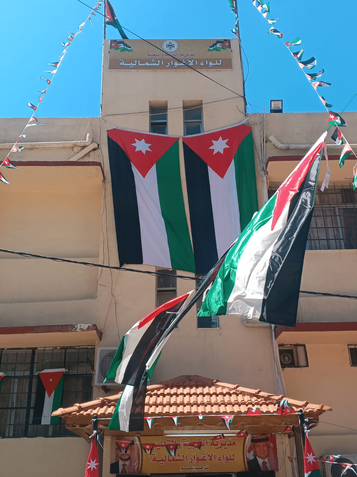 في إطار احتفالات المملكة بيوم العلم الأردني الذي يصادف في السادس عشر من نيسان، أنهت مديرية التربية والتعليم للواء الأغوار الشمالية استعداداتها لإحياء هذه المناسبة الوطنية الغالية، بمشاركة مدير التربية والتعليم للواء الأغوار الشمالية الدكتور مالك عمايرة وجميع موظفي المديرية.