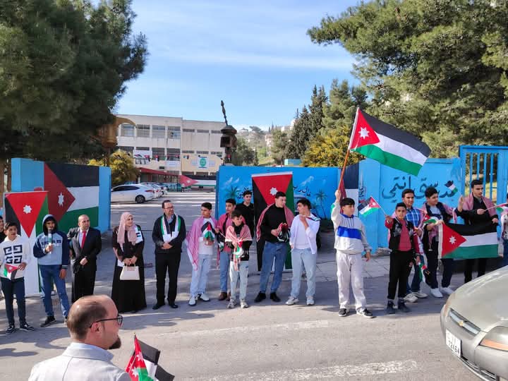 وفي ختام الحفل قامت مديرة التربية والتعليم ومعلمي وطلاب المدرسة بتوزيع الإعلام الأردنية على المواطنين .