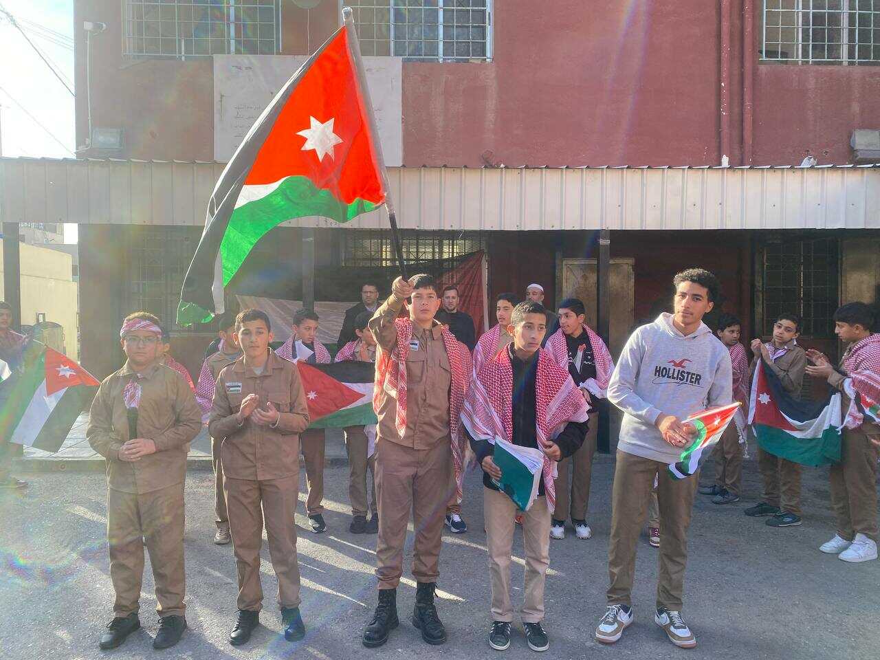 وتحدث الهباهبه عن أهمية تعزيز قيم الولاء والانتماء في نفوس الطلاب، من خلال رفع العلم يوميًا بمرافقة السلام الملكي، مشيرًا إلى أن العلم الأردني هو رمز عزتنا ومنه نستمد فخرنا بأبنائه البواسل الذين حملوه ورفعوه وحافظوا عليه جيلًا بعد جيل، وإننا نستذكر الرجال الرجال الذين بذلوا دمائهم الزكية ليبقى علمنا خفاقًا يعانق السحاب وسيبقى خفاقًا بهمة النشامى والنشميات من أبناء وبنات هذا الوطن.