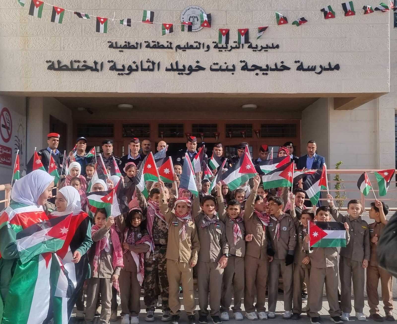 ومن جانب آخر تم توزيع العلم الاردني على الطلبة من فريق الشرطة المجتمعية
