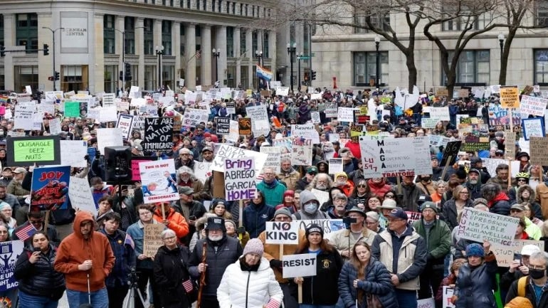 تظاهر آلاف الناس في شوارع مدينة نيويورك رفضاً لسياسات الرئيس الأميركي دونالد ترمب المختلفة، منددين بما يرونه تهديدًا للمبادئ الديمقراطية للبلاد.