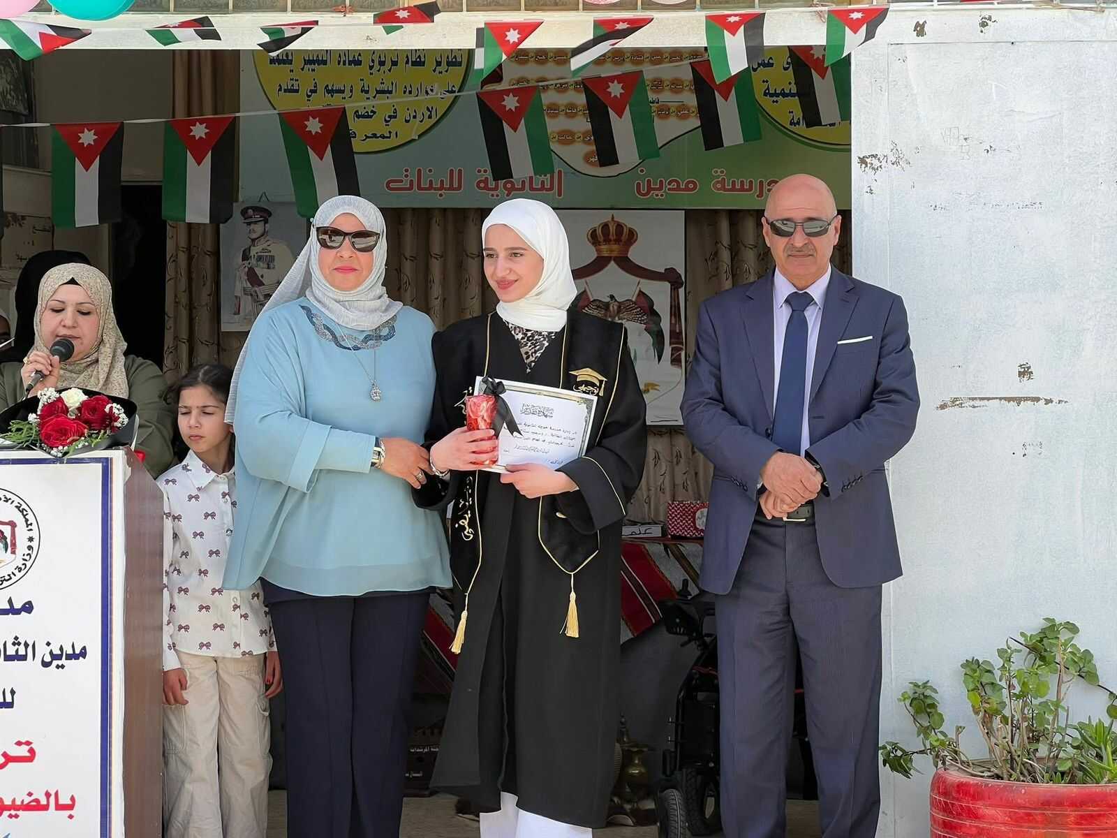 22 الاعلامي - رعى مدير التربية والتعليم لمنطقة الكرك الأستاذ سامر المجالي الاحتفال السنوي الذي نظمته مدرسة مدين الثانوية للبنات بمناسبة تخريج كوكبة من طالبات الثانوية العامة وتكريم المتميزات منهن .