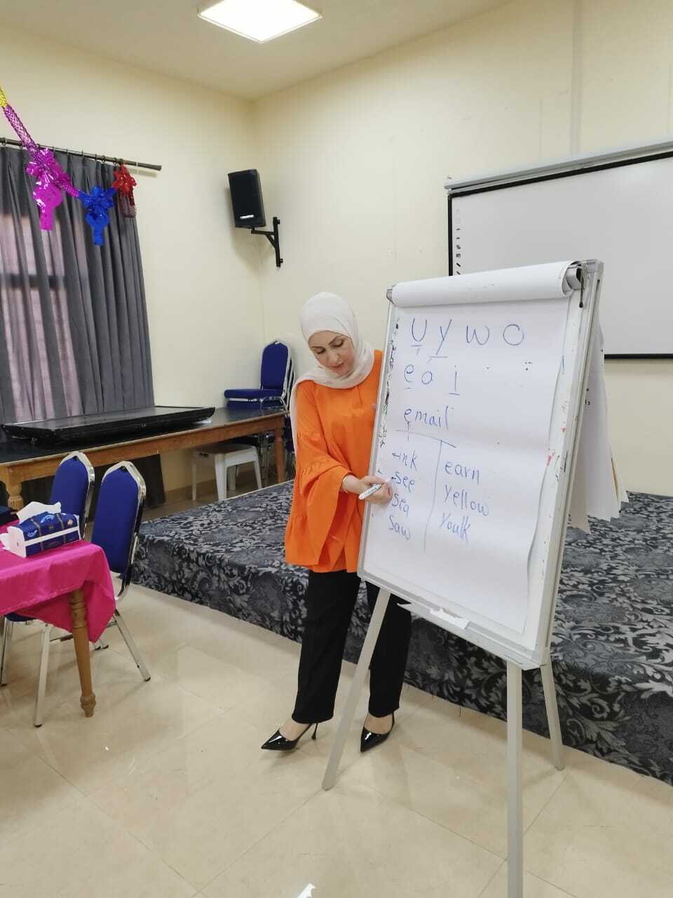 وتقدّم الدورة المدربة صفاء العمري، وتستهدف تنمية المهارات الأساسية في اللغة الإنجليزية لدى المشاركين، من خلال محتوى مبسط يركّز على المحادثة اليومية، القواعد الأساسية، والمفردات الأكثر استخدامًا، وذلك بطريقة تفاعلية تشجع على التطبيق العملي.
