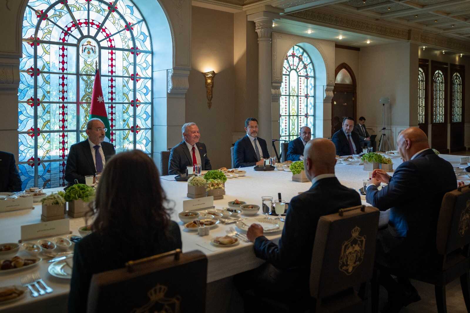 وأكد الزعيمان خلال مباحثات ثنائية تبعتها موسعة، اعتزازهما بالعلاقات التي تجمع الأردن ولبنان، وأهمية مواصلة البناء عليها بما يخدم المصالح المشتركة والقضايا العربية ويحقق استقرار المنطقة.
