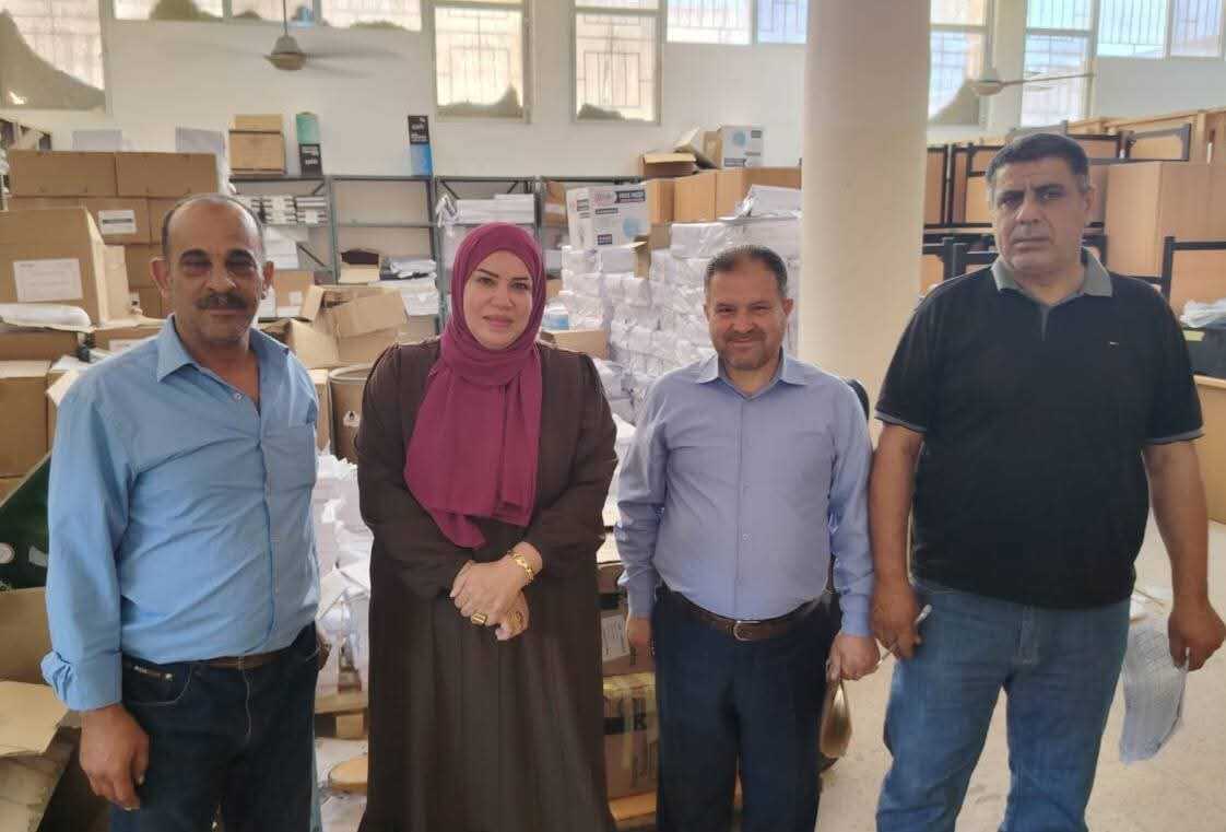 واشادت بجهود جميع العاملين في قسم اللوازم، شاكرة حضورهم اليوم خلال العطلة، ممثلا برئيس القسم محمد الحواري.