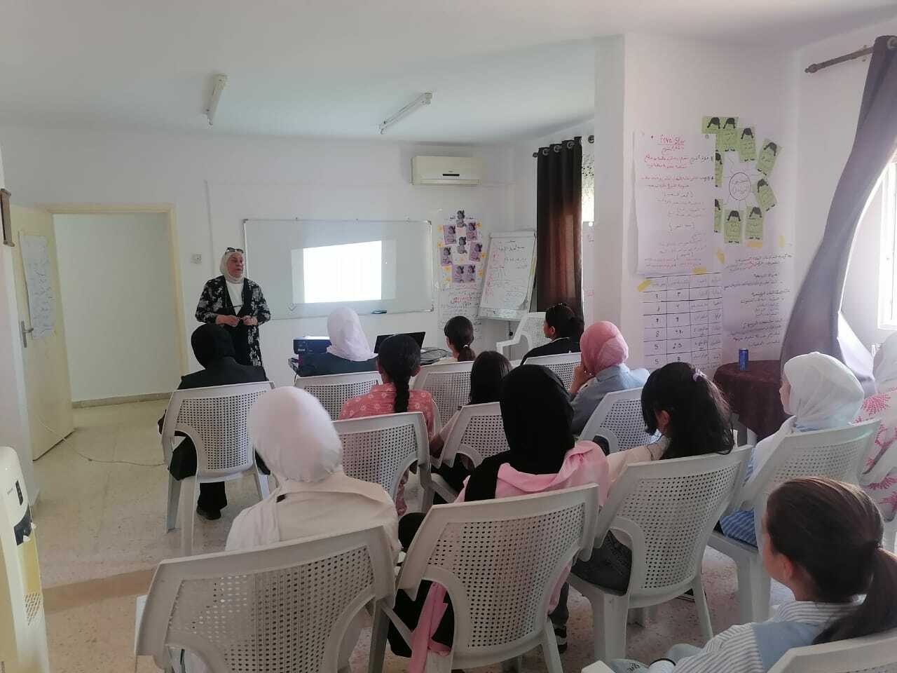 قدمت الورشة المدربة فدوى المدادحة، التي تناولت خلالها مفهوم المناخ وأسباب التغيرات المناخية، إضافة إلى مناقشة الآثار الجانبية السلبية الناتجة عن هذه التغيرات على البيئة والمجتمعات.
