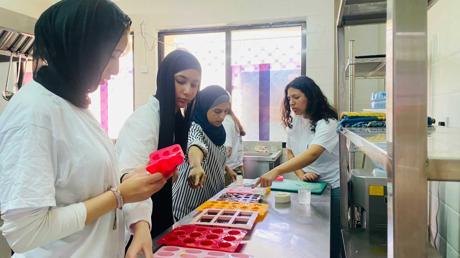تضمن المعسكر تدريبات عملية في فنون الطهي، والفندقة والضيافة، والخياطة، والتجميل، إلى جانب تشكيل المناظر بعجينة الفوم، وصناعة الصابون.