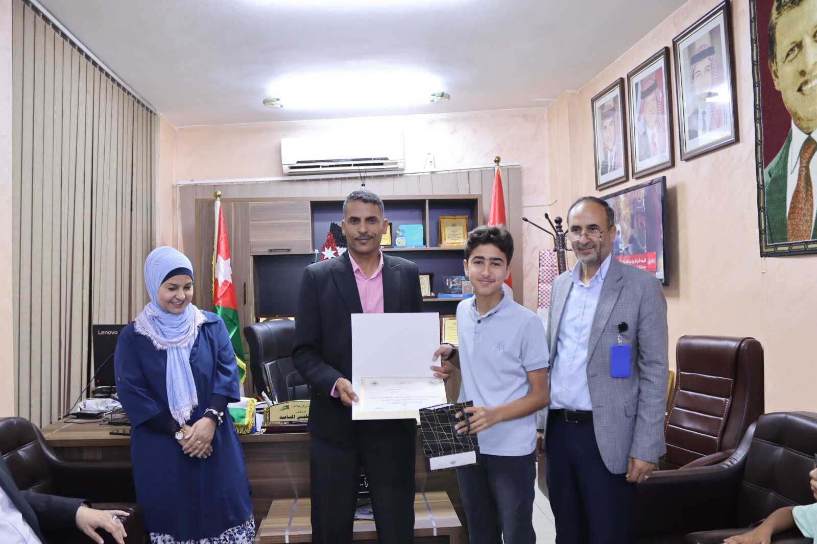 22 الاعلامي - كرّم مدير التربية والتعليم للواء البادية الشمالية الغربية الدكتور طايل المساعيد، اليوم الاربعاء، عددا من المدارس والطلبة الفائزين في المسابقات والمبادرات على مستوى المملكة، بحضور رئيس قسم التعليم العام الاستاذ خالد الخالدي وضابط ارتباط مبادرة مقدام نوال مشاقبة.