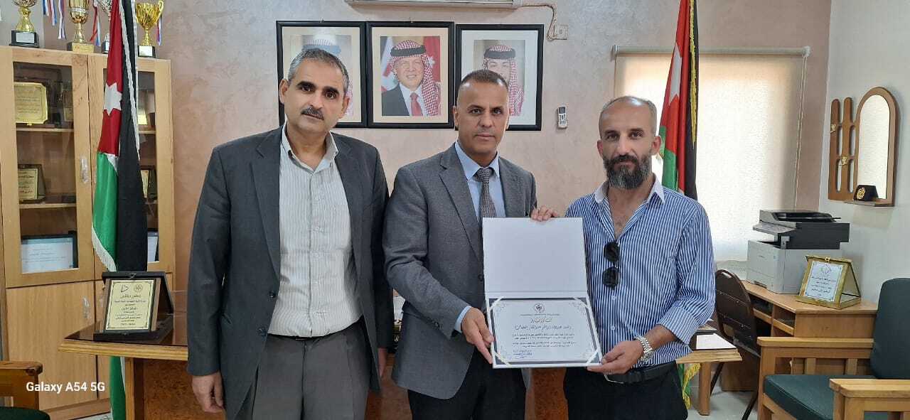 22 الاعلامي - شادي نبيل -كَرَّمَ مدير التربية والتعليم للواء الشونة الجنوبية الدكتور مازن هديرس، في مكتبه اليوم الخميس ، 10/7/ 2025لجان الوزارة المشاركة بإمتحانات الثانوية العامة للدورة الصيفية،والكادر الإداري والتعليمي لجهودهم المبذولة في متابعة امتحانات الثانوية العامة 2024/2025بحضور مدير الشؤون التعليمية الدكتور شاهر الدريدي،ورئيس قسم الاختبارات والامتحانات الدكتور محمد ثلجي.