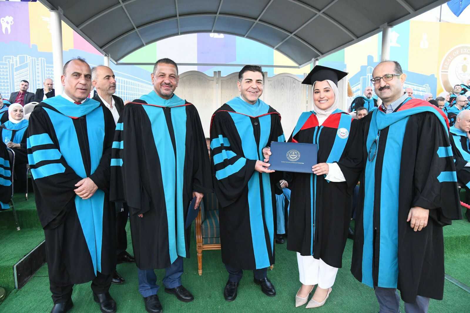 وأقيم الحفل، برعاية رئيس الجامعة الأستاذ الدكتور خالد السالم، وبحضور نواب الرئيس، وعمداء الكليات، وأعضاء الهيئتين التدريسية والإدارية، وجمع كبير من ذوي الطلبة الذين شاركوا أبناءهم فرحة هذا الإنجاز الكبير.