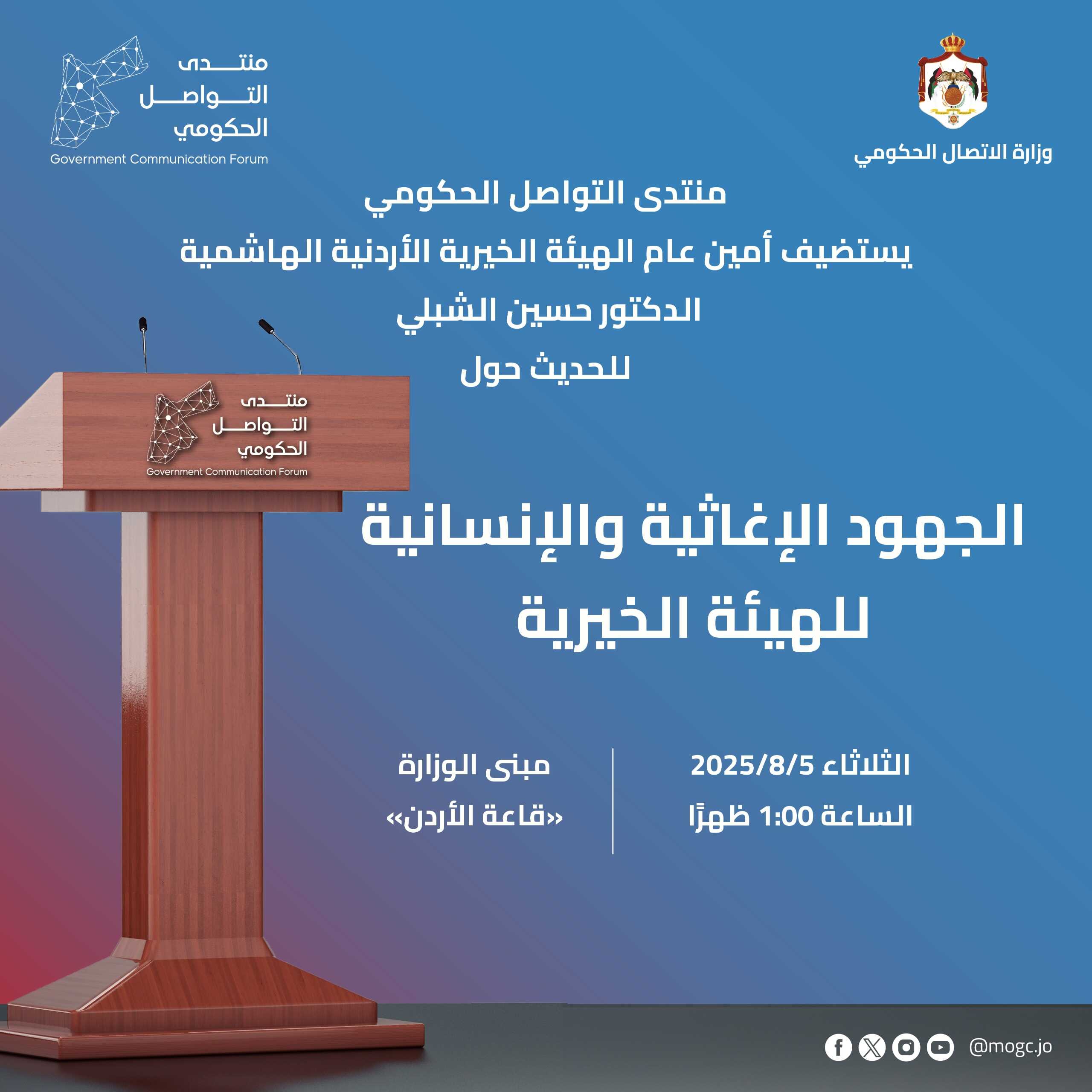 منتدى التواصل الحكومي يستضيف أمين عام الهيئة الخيرية الهاشمية غدا