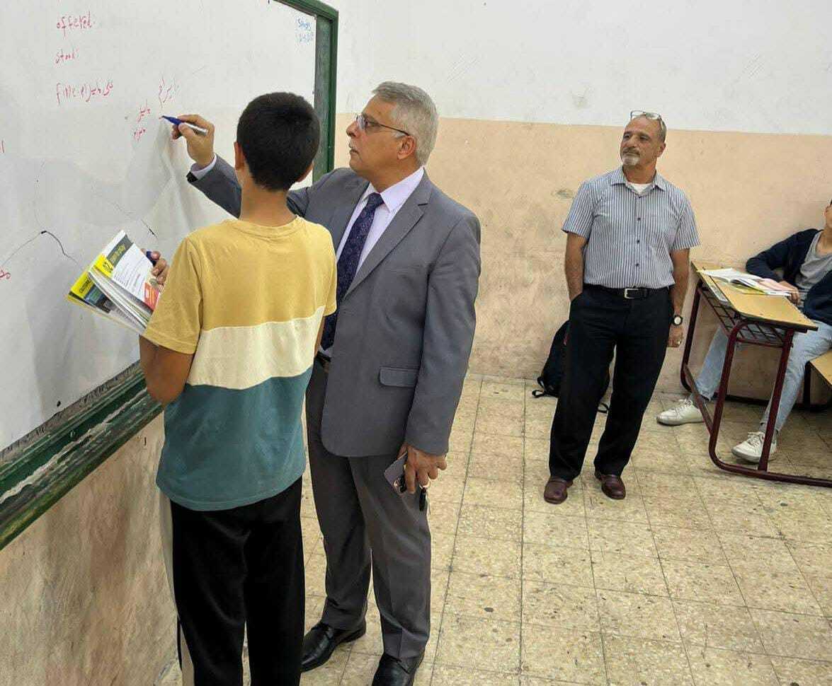 كما شملت الجولة زيارة مدرسة القادسية الأساسية للبنات، حيث التقى مديرة المدرسة نعمات جروان وعدداً من كادرها الإداري والتعليمي.