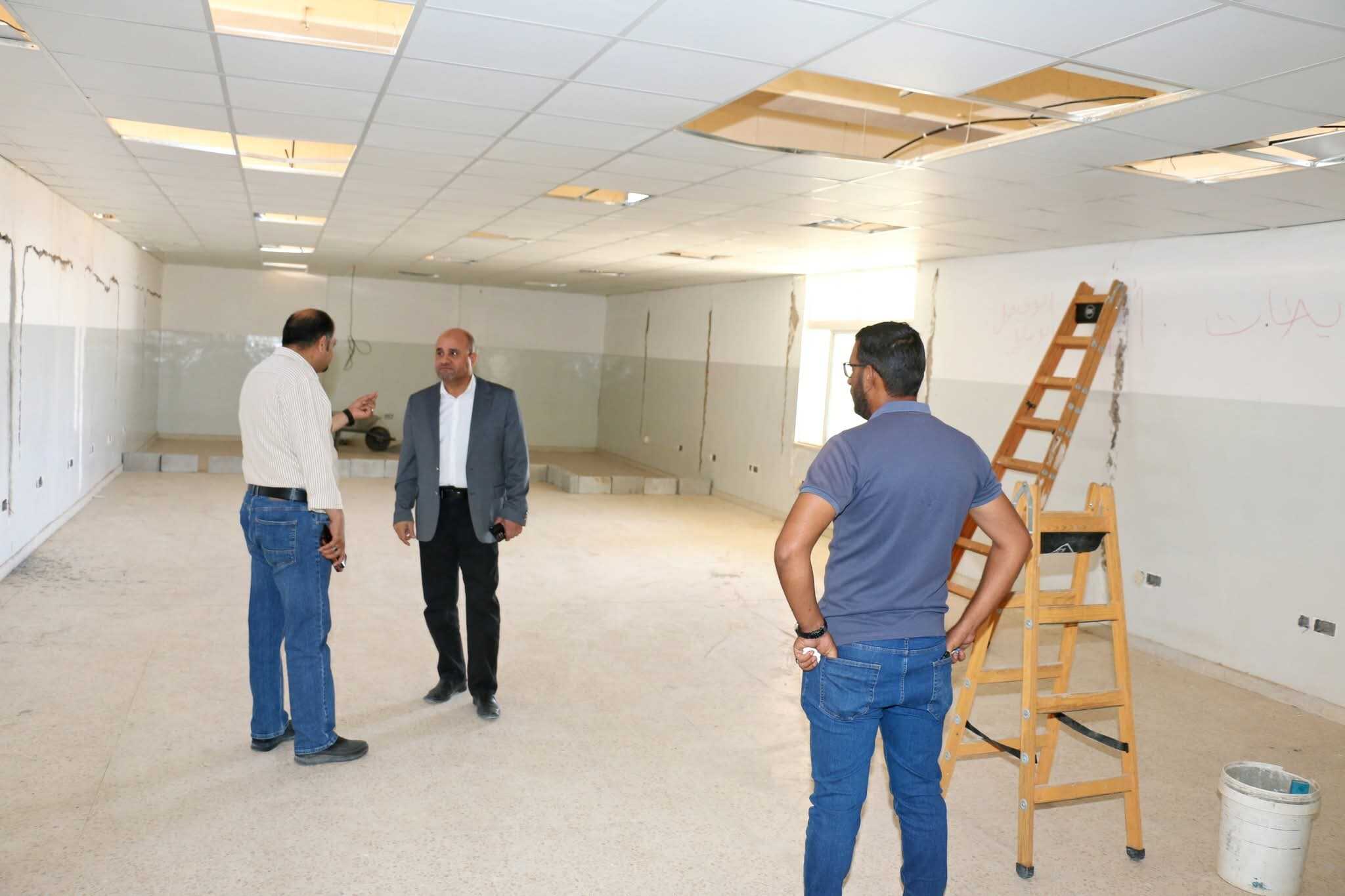 كما تفقد أعمال التجهيز والصيانة الذاتية التي تباشرها المدرسة، حيث تعمل على فتح عدد من الغرف ودمجها لتشكيل قاعة متعددة الأغراض بمساحة تقارب 200 متر مربع، وذلك بجهود ذاتية متميزة من المدرسة دون تحميل الوزارة أية أعباء مالية إضافية، مع الاستفادة من الطاقات الداخلية للهيئة التدريسية والطلبة، خصوصًا في قسم البيئة العمرانية والإنشاءات، بما يعكس الربط بين الجانب النظري والتطبيقي في التعليم المهني.