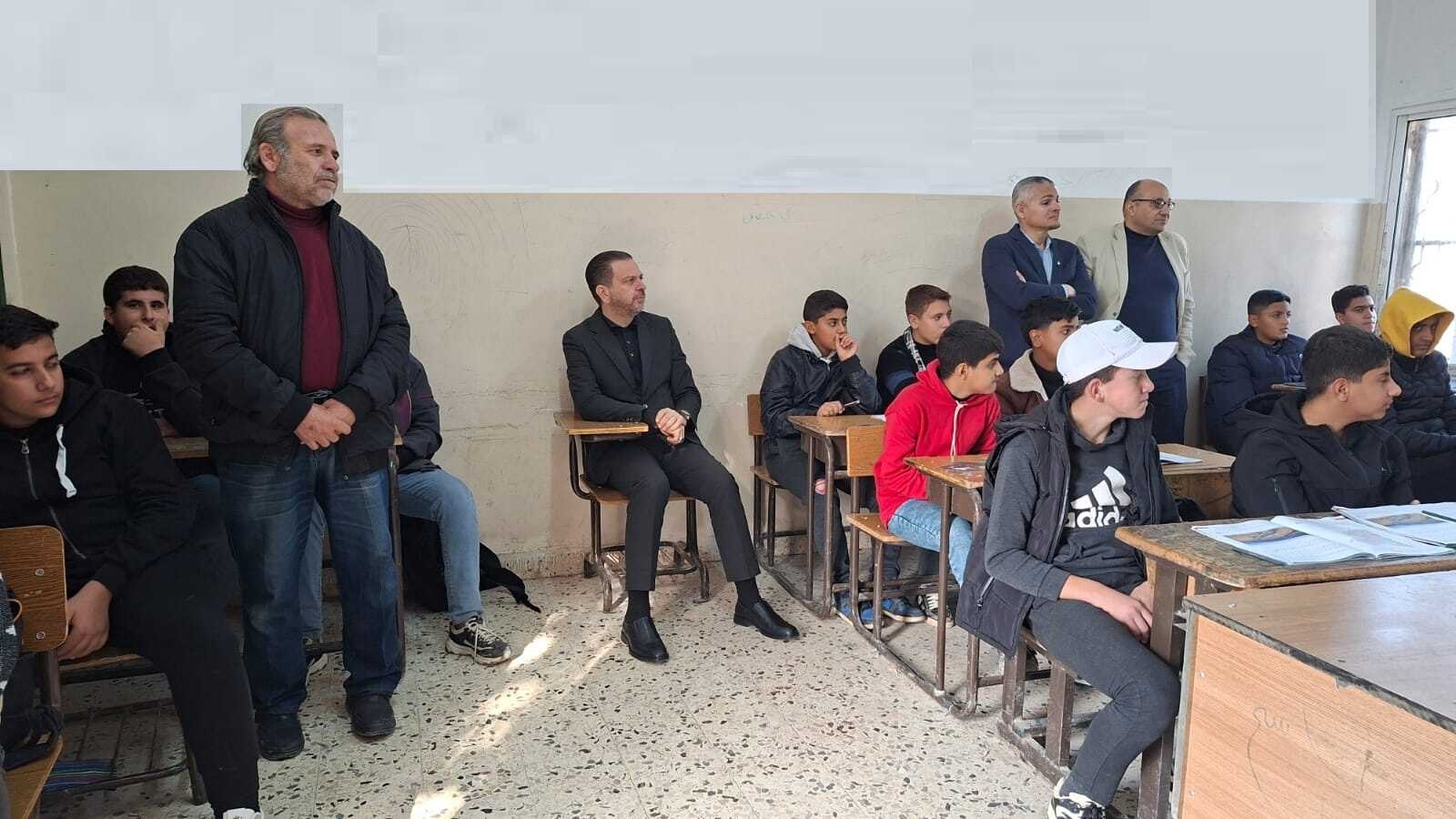 وخلال الزيارة، اطلع أبو عزام على جاهزية المرافق الصفية والإدارية، وتابع مستوى انضباط الدوام المدرسي، مشدداً على أن البيئة الفاعلة تبدأ من صف منظم، ومعلم ملتزم، وطلبة محفَّزين على التعلم. كما حضر جانباً من الحصص الدراسية في المدرستين، حيث تفاعل مع الطلبة وطرح عليهم مجموعة من الأسئلة التي تقيس مدى الفهم والتحليل، مؤكداً ضرورة استخدام الأساليب التي تشجع التفكير النقدي وترفع من مستوى التحصيل العلمي.