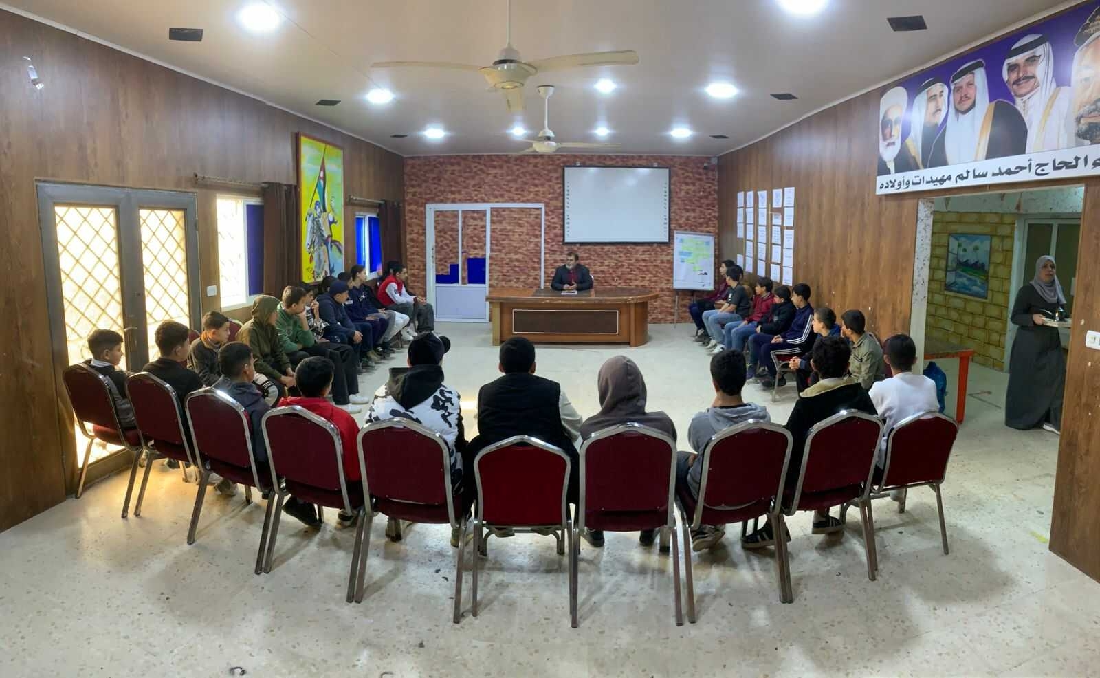 وفي مركز شباب الوسطية، ندوة ثقافية بعنوان “العادات والتقاليد والموروث الأصيل والفلكلور”، بمشاركة 25 يافعاً من الفئة العمرية (12–15) عاماً.
