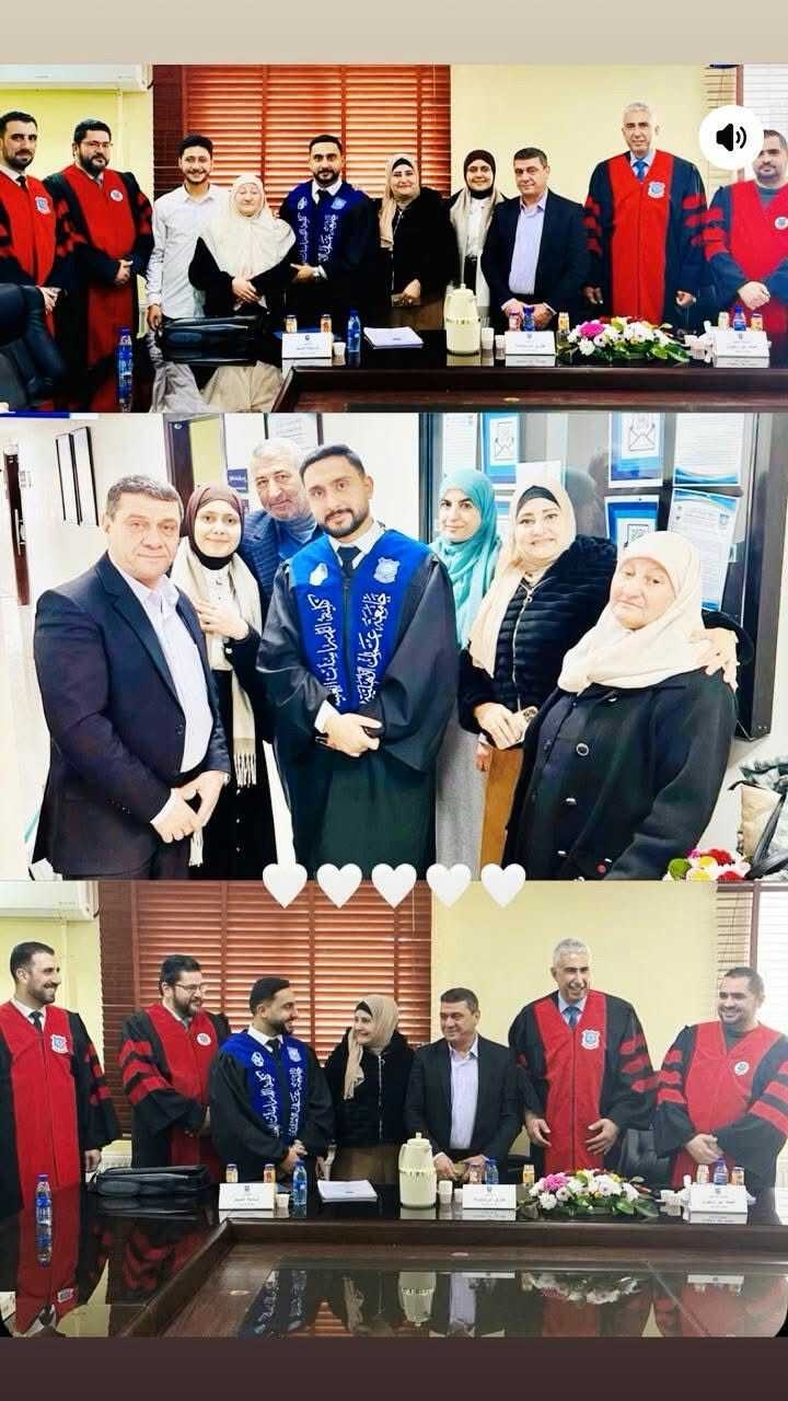 بمناسبة مناقشة رسالة الماجستير في العلوم الطبية المخبرية من جامعة عمان الأهلية بتقدير ممتاز..