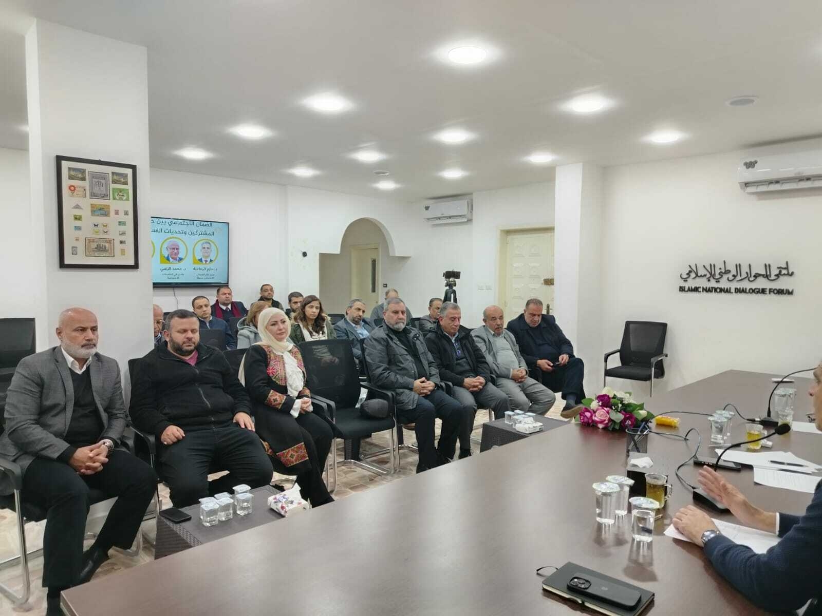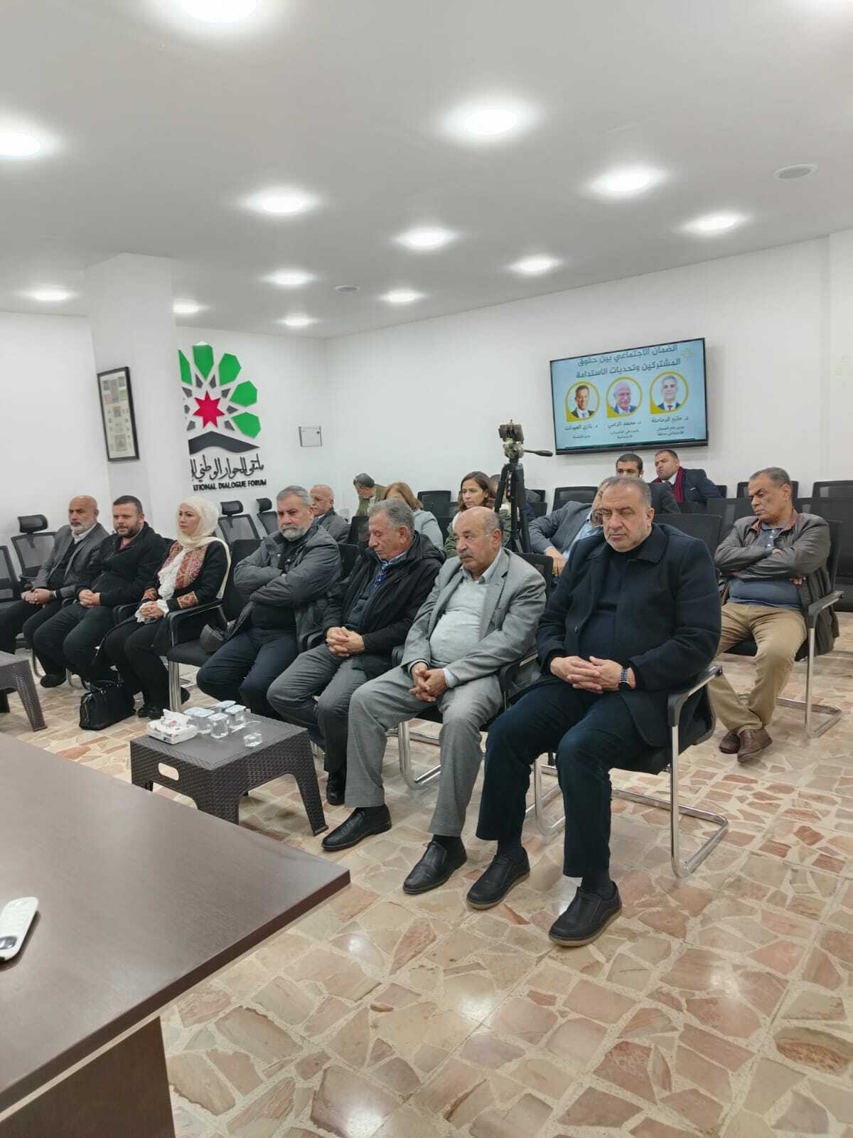 وقد أدار الجلسة باقتدار الدكتور غازي العودات، حيث شهدت الندوة نقاشاً موسعاً وتفاعلاً من الحضور الذين طرحوا تساؤلات حول قانون الضمان وأثره على التقاعد المبكر والرواتب التقاعدية.