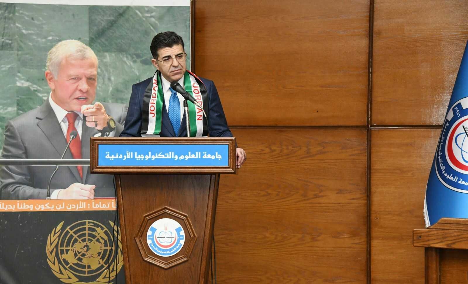 جاء ذلك خلال رعايته الحفل الوطني الذي نظمته عمادة شؤون الطلبة في الجامعة، بالتعاون مع القوات المسلحة الأردنية، بمناسبة يوم العلم الأردني وتأسيس الدولة الأردنية وذكرى معركة الكرامة، بحضور مدير الإعلام العسكري في القوات المسلحة الأردنية، العميد الركن مصطفى الحياري، ونواب الرئيس وعمداء الكليات وعدد من أعضاء الهيئتين التدريسية والإدارية وجمع من الطلبة.