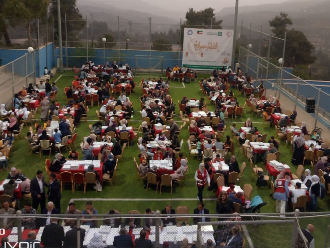 اقامت جمعية الهلال الأحمر الاردني وبدعم من بيت التمويل الكويتي بالتعاون مع بلدية عجلون الكبرى ومركز زها الثقافي في القرية الحضرية بالمحافظة مساء أمس الاحد إفطاراً خيريا ل٨٠٠ شخص من الأيتام والفقراء والمحتاجين الاردنيين واللاجئين السوريين بحضور عدد من مدراء الدوائر الرسمية والشعبية ومؤسسات المجتمع المدني .