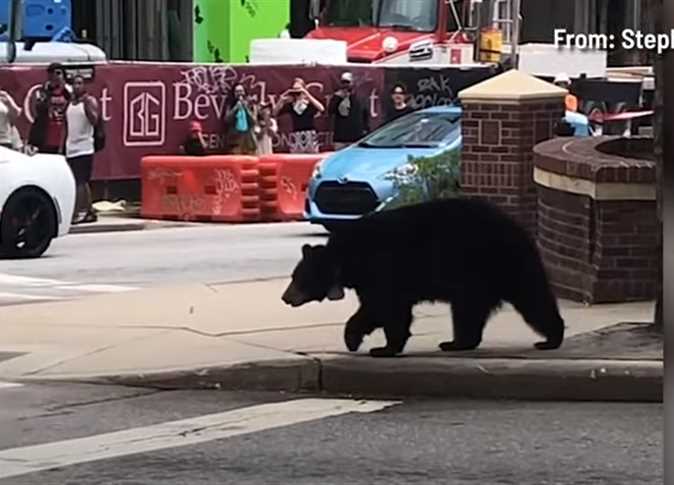 أظهر مقطع فيديو تداوله رواد مواقع التواصل الاجتماعي، دبا عملاقا يتجول في وسط مدينة أشفيل بولاية نورث كارولينا الأميركية.