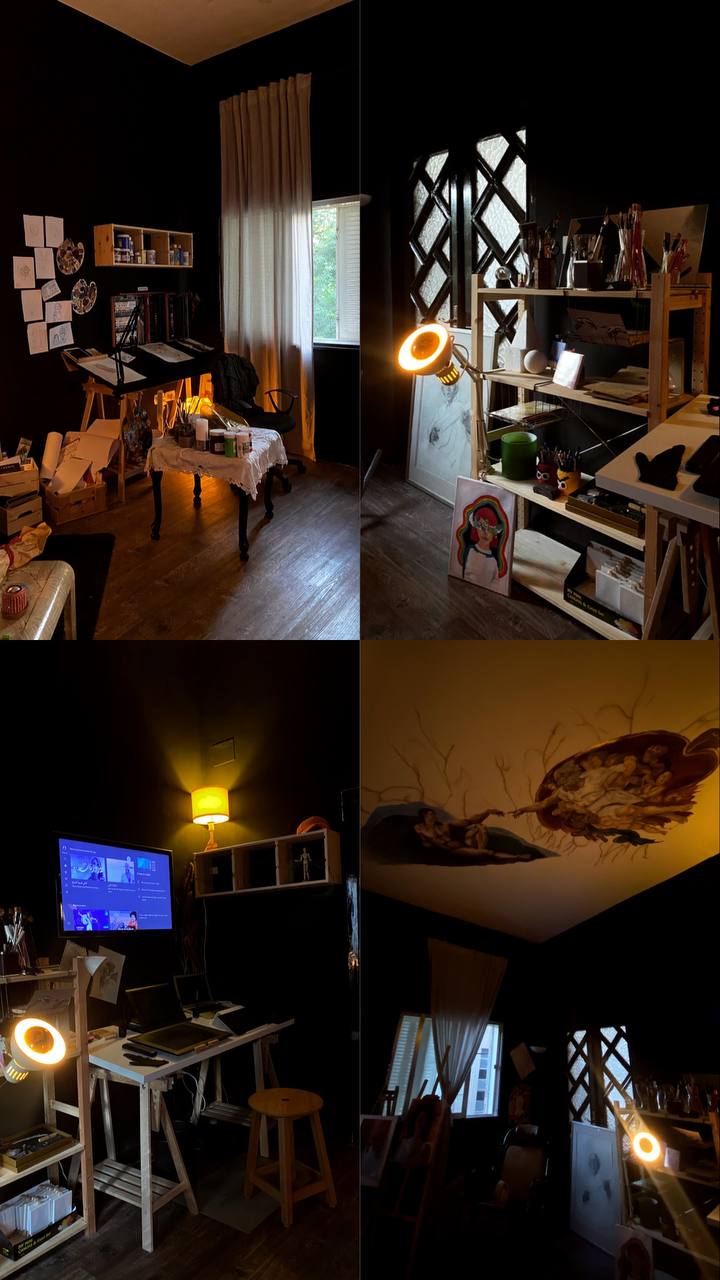 وإذا انتقل الزائر للصالة ينبهر بجمال الألوان ولوحات مرح المعروضة للبيع وفي حين قرر مواصلة اكتشاف كوكب الفن من خلال الأبواب الخشبية الواسعة ينتقل الى استديو التصوير الحديث وصالة الرسم والتي رسم على سقفها لوحة بغاية الجمال تعيدنا الى الفن الكلاسيكي ويتابع الزائر رحلته بممرات وصالات تزينها ابداعات فارس الفتوغرافية واكتشاف المزيد والمزيد من أماكن الفنون والاشغال اليدوية وكل زاوية هناك تروي حكايتها وتنفرد بشخصيتها وزمنها وطريقة إخراجها.