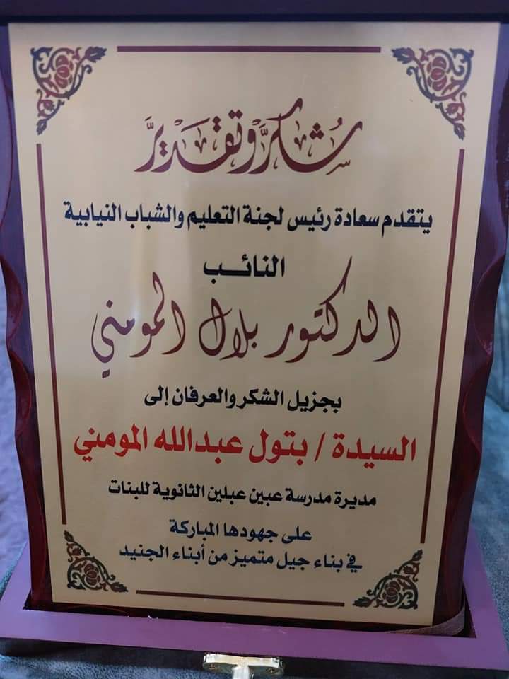 بتول المومني تحقق تميزا علميا للطالبات منذ توليه ادارة مدرسة عبين عبلين الثانوية للبنات …صور