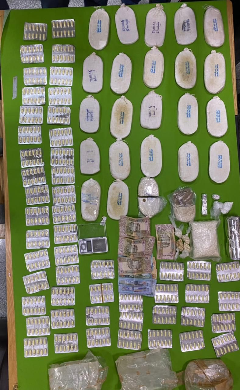 وفي شرق العاصمة القي القبض على أحد الأشخاص من تجار المواد المخدرة بعد التأكد من قيامه بتخزينها داخل منزله وضبط بحوزته 24 كفاً من مادة الحشيش المخدرة و 2500 حبة من حبوب الكبتاجون المخدرة و 650 حبة من المستحضرات الطبية بالإضافة الى 40 غراماً من مادة الكوكايين المخدرة.