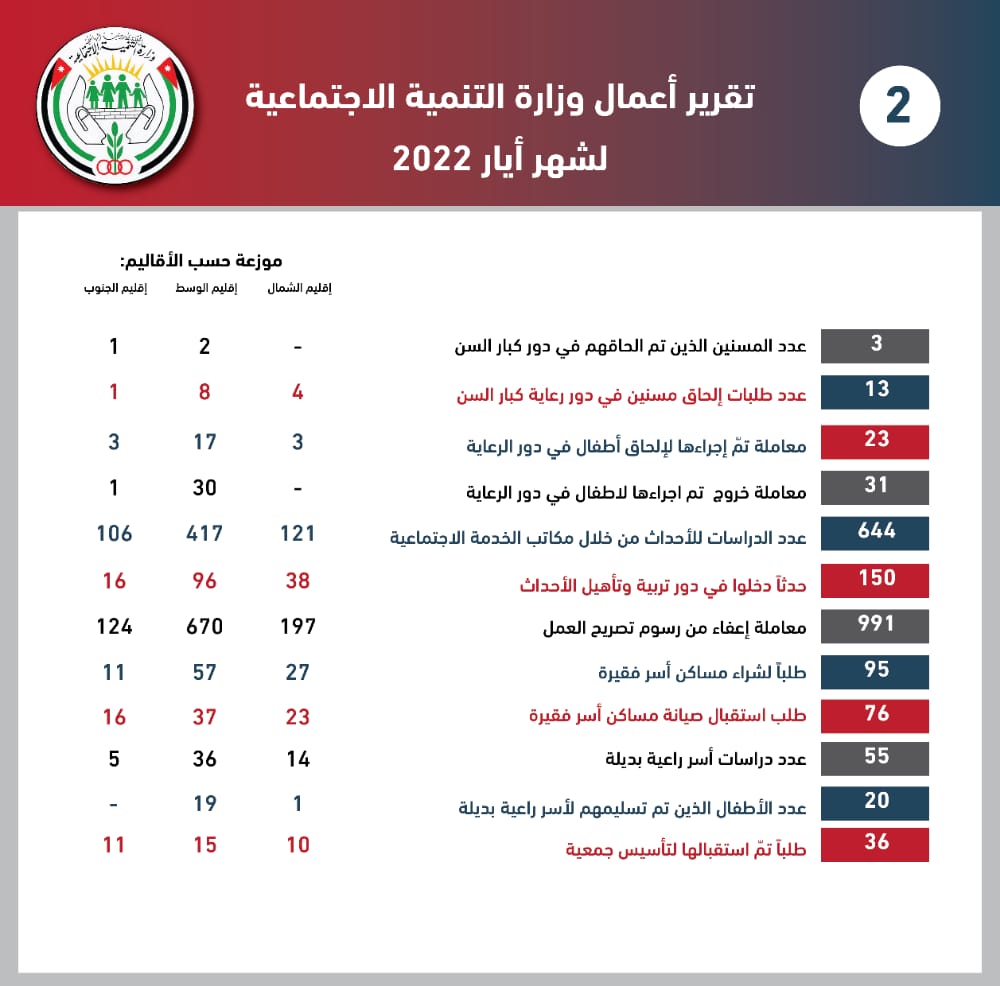 التنمية الاجتماعية تصدر تقريرها لشهر أيار الماضي... تفاصيل