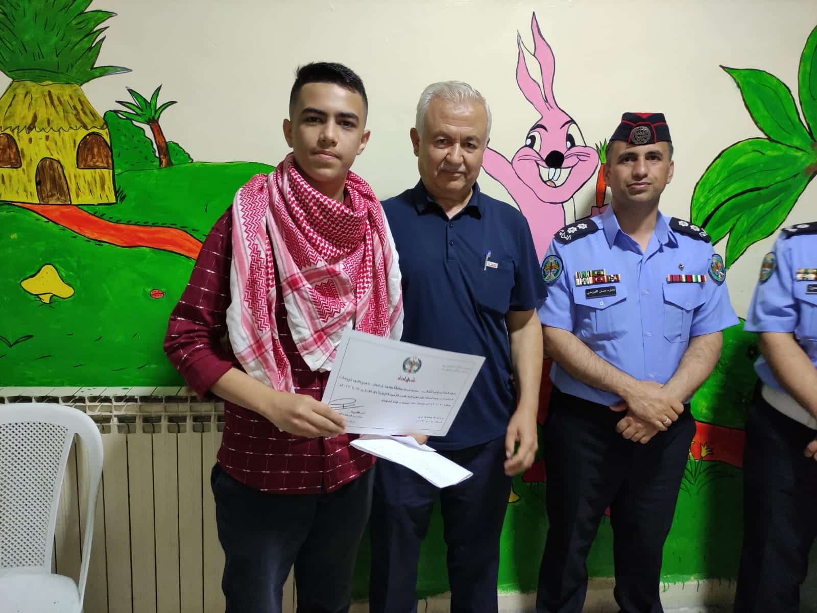 وفي نهاية حفل الاختتام الذي حضره الملازم ثاني بدر فريحات وعدد من الكادر التعليمي تم توزيع الشهادات على الطلبة المشاركين في الدورة كما كرم مدير المدرسة فريحات المحاضرين من الشرطة المجتمعية .