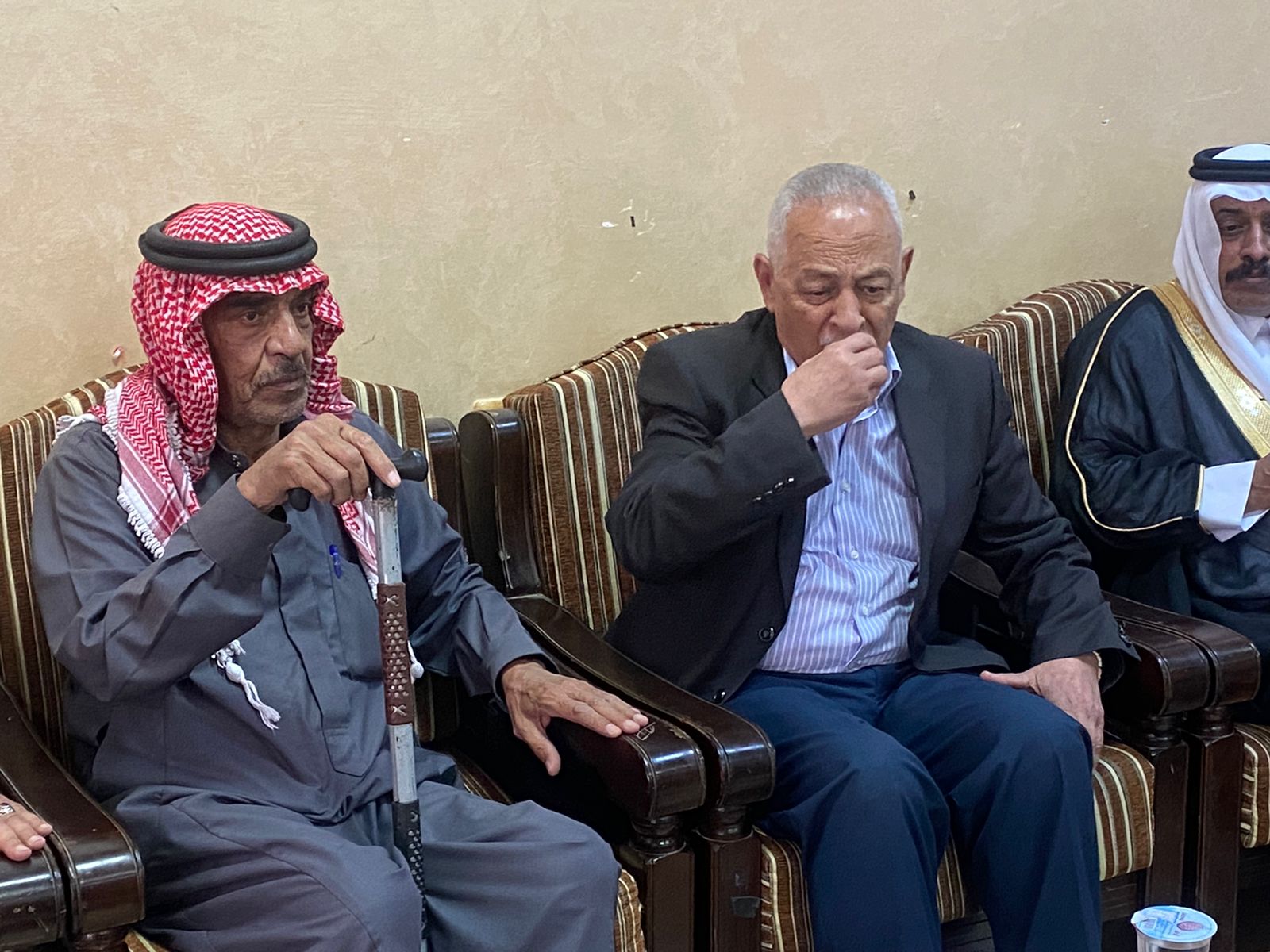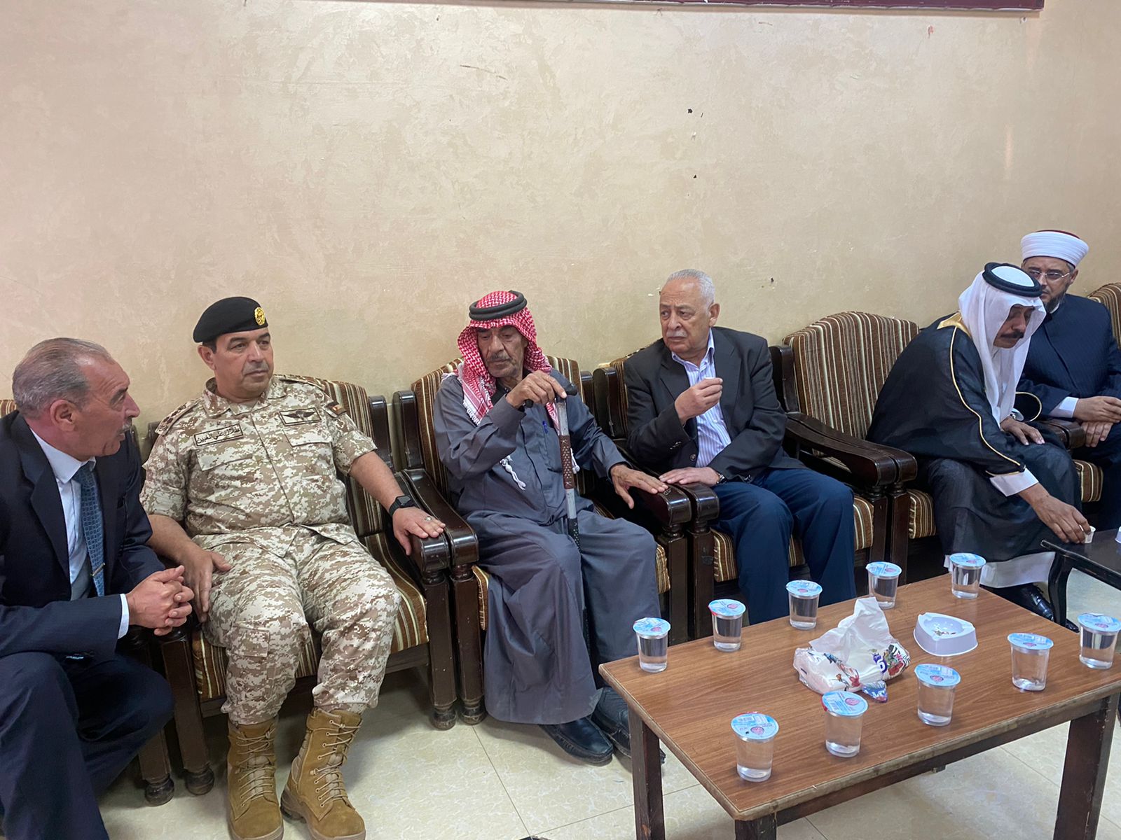 22 الإعلامي- بناء على توجيهات جلالة الملك المعظم ، معالي رئيس الديوان الملكي الهاشمي يوسف حسن العيسوي يقدم واجب العزاء لاهل الشهيد رقيب/١ جميل محمود متروك السيايده في محافظة الكرك / الجدعا.