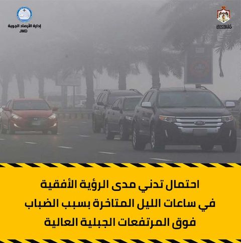 22 الإعلامي - نشرت دائرة الأرصاد الجوية للمملكة الأردنية الهاشمية عبر موقعها حالة الطقس المتوقعة لليوم فستكون بمشيئة الله .