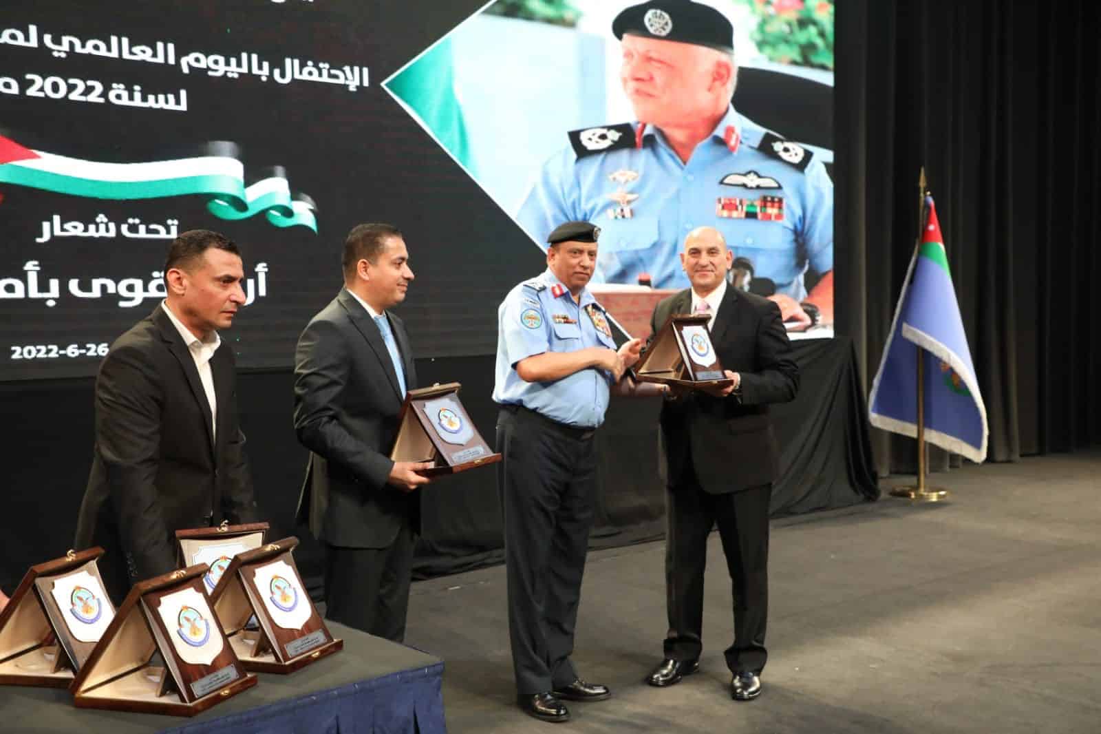 ونظمت مديرية الأمن العام الاحتفال بمشاركة عدد من الشركاء الاستراتيجيين من المؤسسات الوطنية، والفعاليات الشعبية ، مظهرين تكاتف المجتمع الأردني ودعمه لجهود إدارة مكافحة المخدرات في محاربة هذه الافة وحماية المجتمع من اثارها المدمرة .