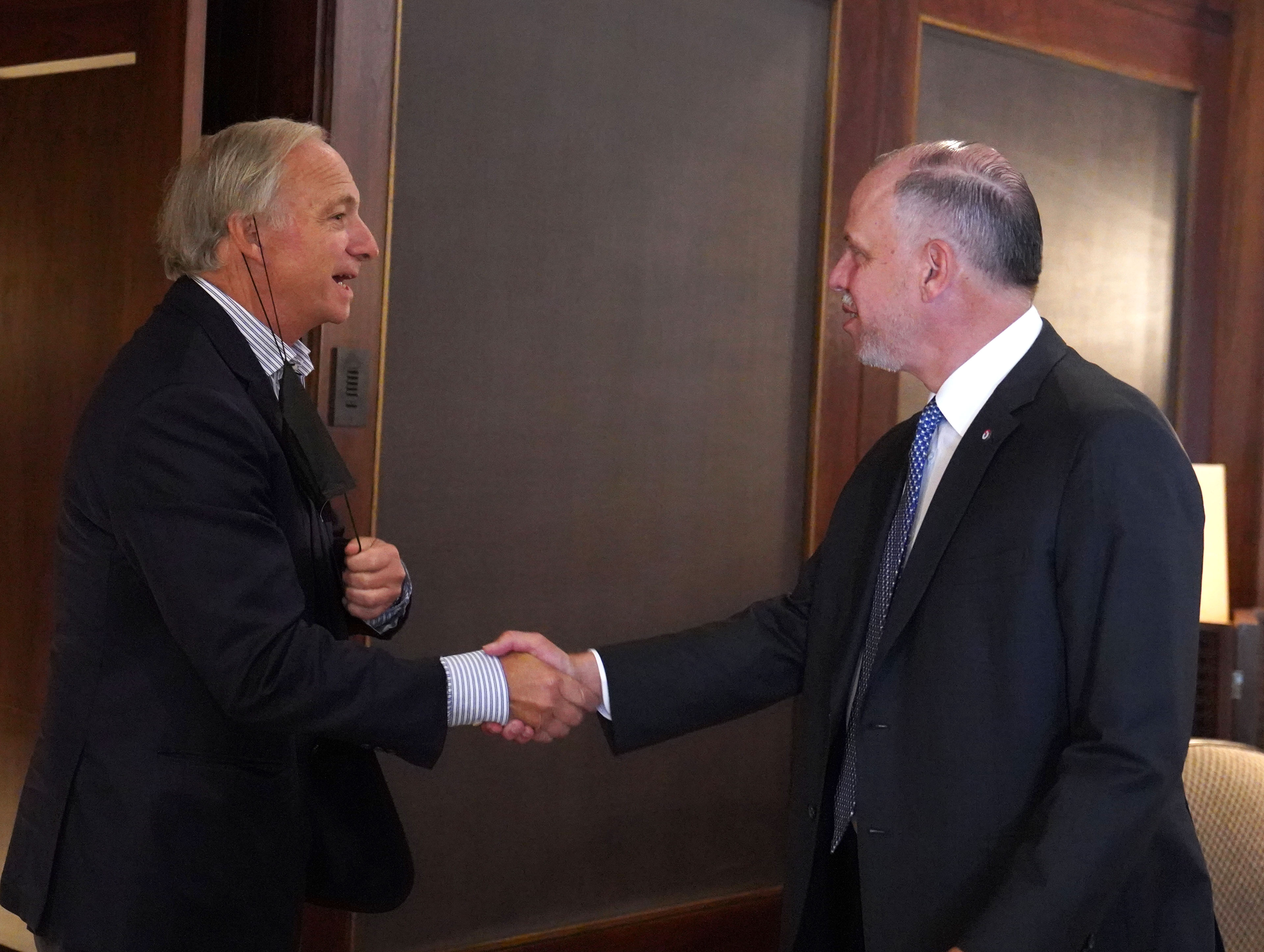 22 الإعلامي- استقبل نائب جلالة الملك، سمو الأمير فيصل بن الحسين في قصر الحسينية، اليوم الخميس، مؤسس منظمة أوشين إكس العالمية المختصة بالبيئة البحرية راي داليو.