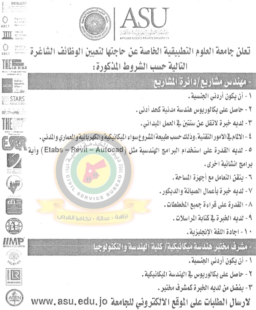 اعلان وظائف شاغرة صادر عن جامعة العلوم التطبيقية الخاصة
