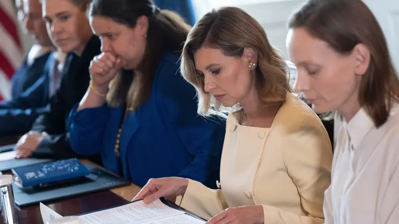 من جهتها، اختفت زيلينسكا إلى حد كبير عن الأنظار مع طفليها خلال الأشهر الأولى من الحرب، لكنها ظهرت للعلن يوم 8 مايو للقاء جيل بايدن.