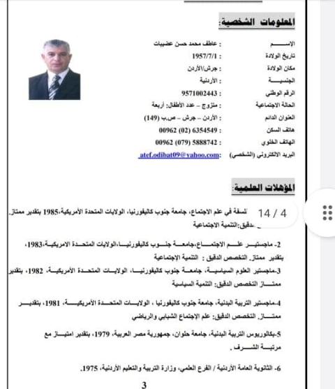 وتاليا نص السيرة الذاتية للدكتور عضيبات