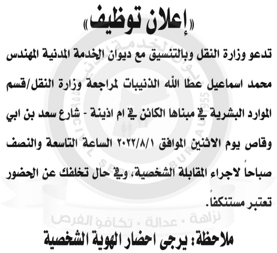 نشر ديوان الخدمة المدنية على موقعه الاللكتروني الاعلانات التالية: