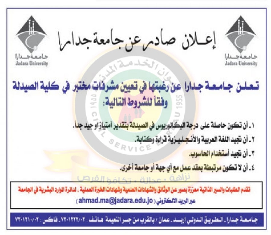اعلان عن وظائف شاغرة صادر عن جامعة جدارا