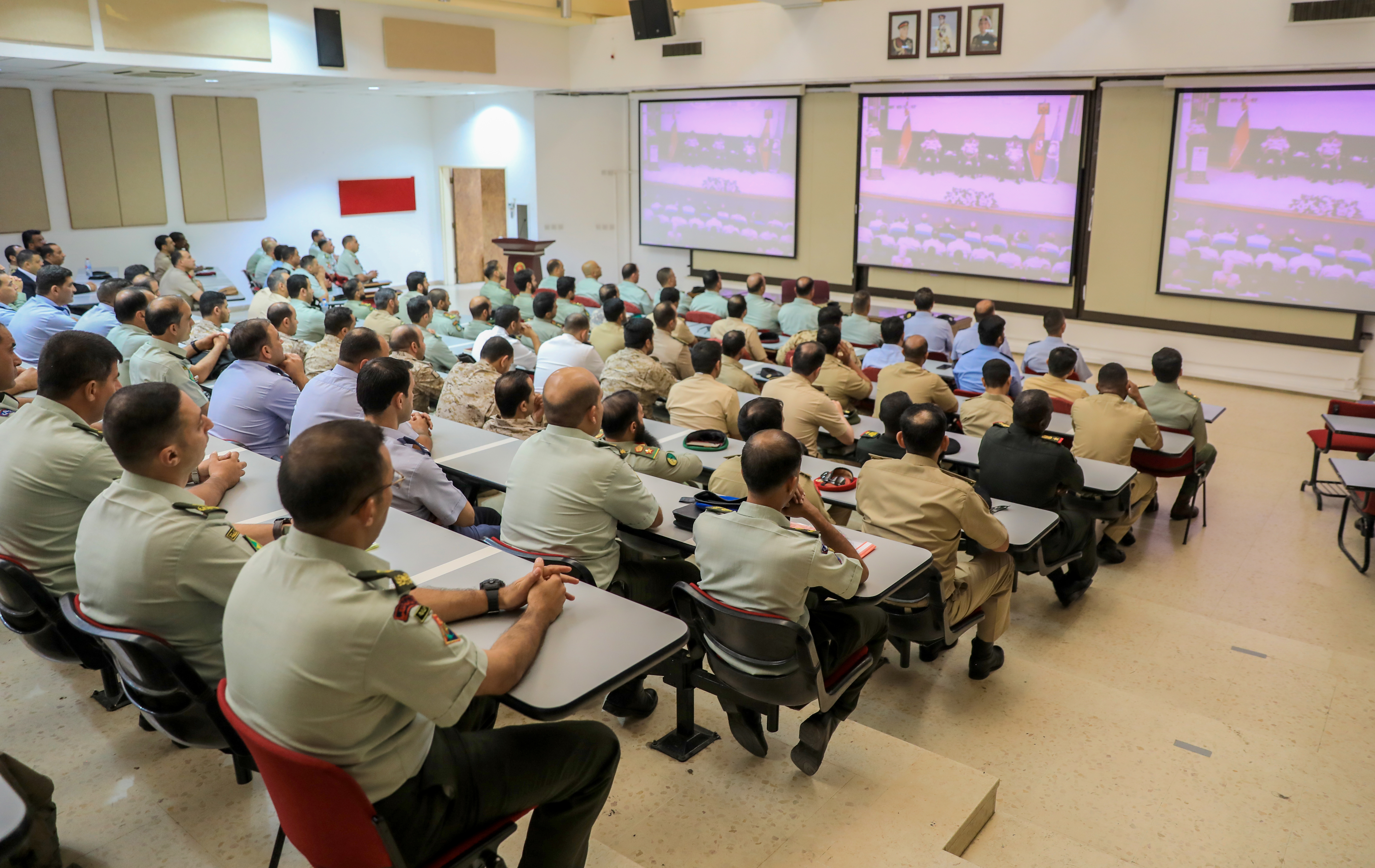 ونقل المساعد للعمليات والتدريب، تحيات ومباركة جلالة القائد الأعلى الملك عبدالله الثاني لجميع المشاركين التحاقهم بهذا الصرح الأكاديمي المتميز الذي عمل منذ تأسيسه على رفد القوات المسلحة الأردنية - الجيش العربي وجيوش الدول الشقيقة والصديقة بالقادة وضباط الركن المؤهلين.