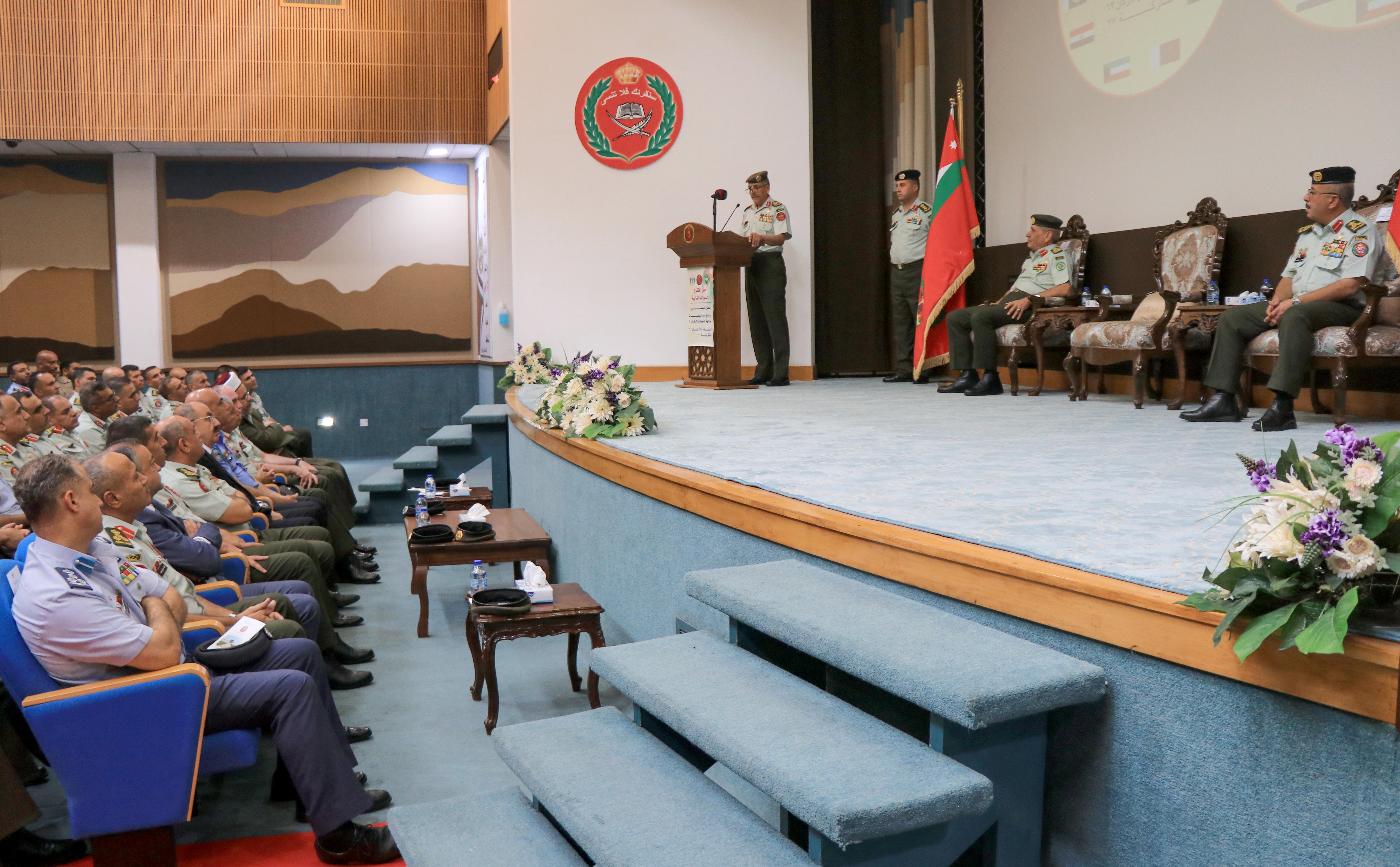وألقى مفتي القوات المسلحة العميد الدكتور ماجد الدراوشة كلمة أكد فيها حرص قيادتنا الهاشمية الحكيمة على إنشاء المعاهد العلمية العسكرية ورعايتها حتى أصبحت منارات علم ومعرفة يقصدها القادة المتفوقون من طلاب العلوم العسكرية.