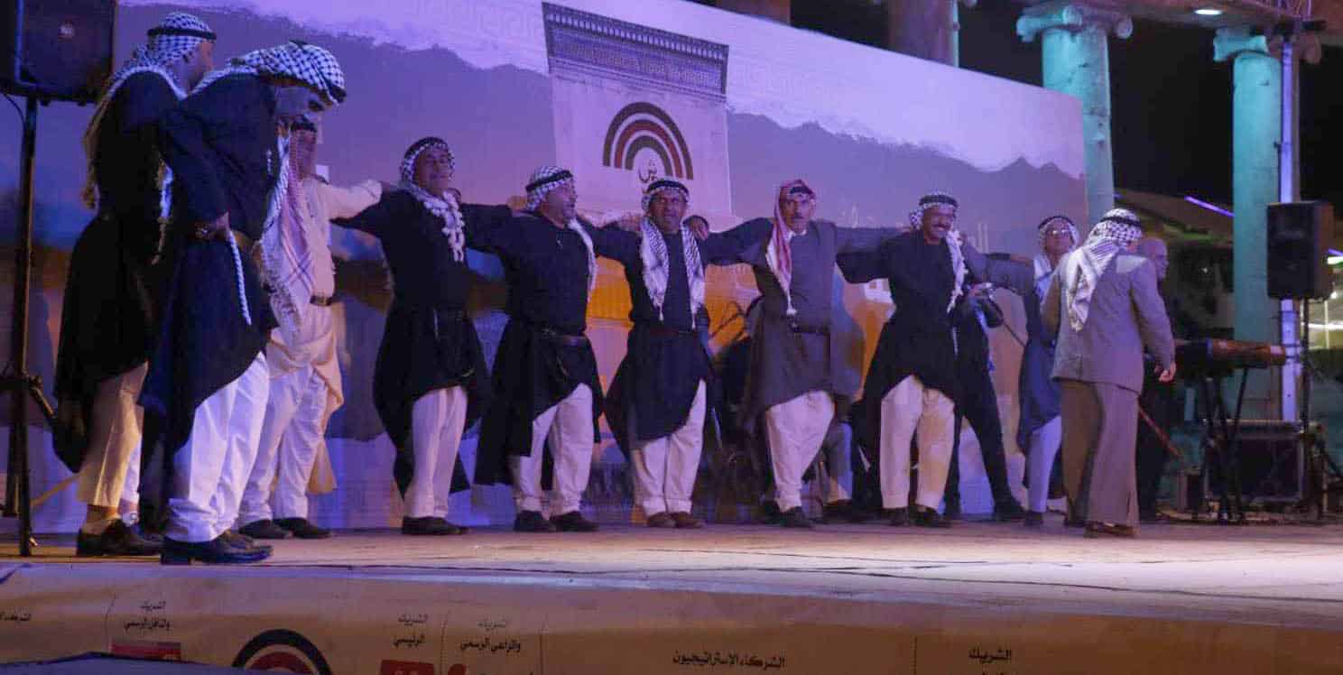 فيما تابع جمهور الساحة الرئيسية، وصلات فلكلورية لفرقة منتدى مأدبا لإحياء التراث، التي استحضرت من روح الفلكلور العديد من اللوحات الراقصة.