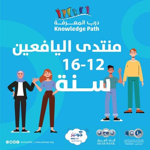 تدعو مؤسسة عبد الحميد شومان جميع اليافعين أعمار (12-16) سنة للمشاركة في "منتدى اليافعين" والذي يهدف إلى طرح وجهات النظر المختلفة، وإثراء مفهوم الحوار البناء، واحترام الرأي الآخر وتعزيز روح العمل الجماعي، وتعزيز مجموعة من المهارات الحياتية كإدارة الوقت وإدارة الجلسات الحوارية، وذلك يوم الاثنين 15 آب 2022، الساعة 4 مساءً في مقر المؤسسة - جبل عمّان. #درب_المعرفة